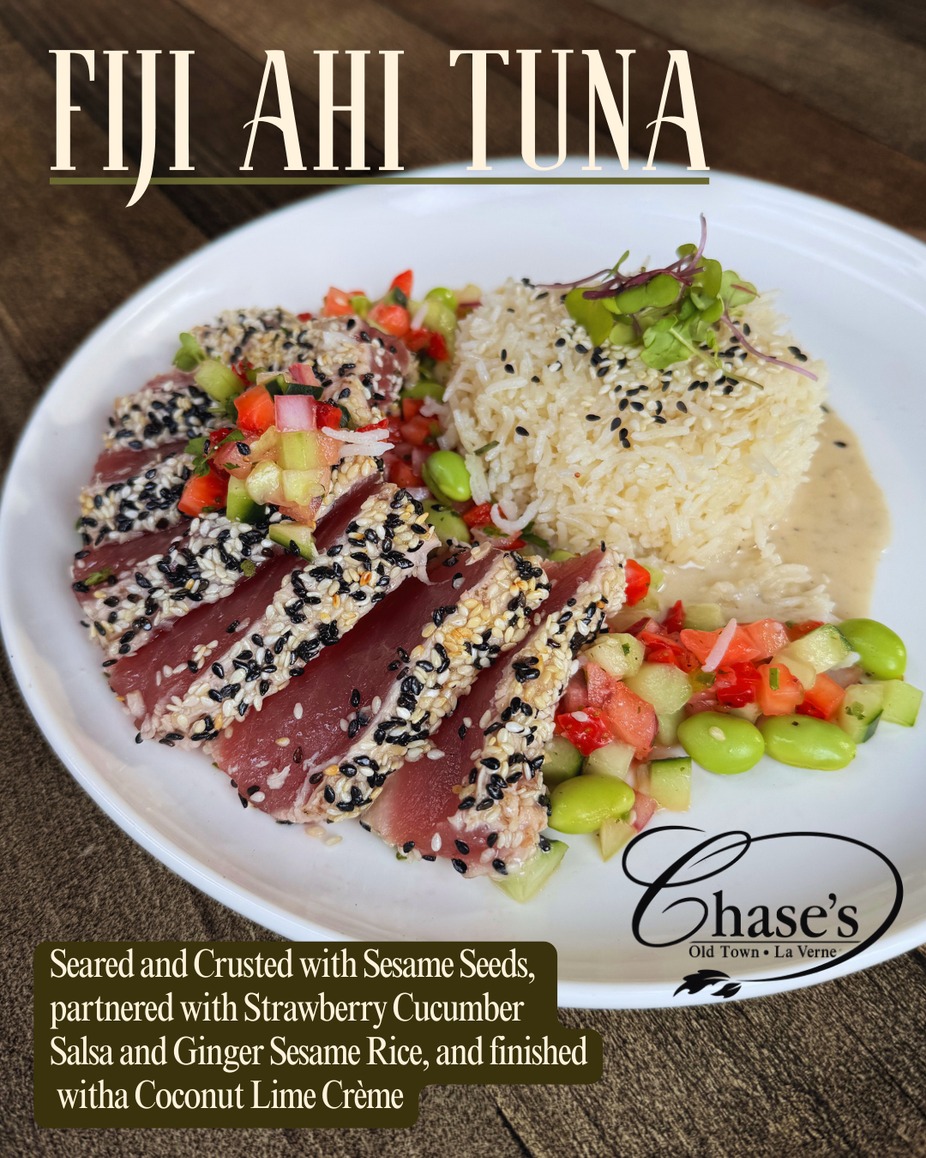 Catch of the Weekend! | FIJI AHI TUNA – Seared and Crusted with Sesame Seeds, partnered with Strawberry Cucumber Salsa and Ginger Sesame Rice, and finished with a Coconut Lime Crème | Catch it before it’s Gone!